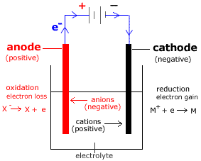 Note: Positive terminal → anode; Negative terminal → cathode.